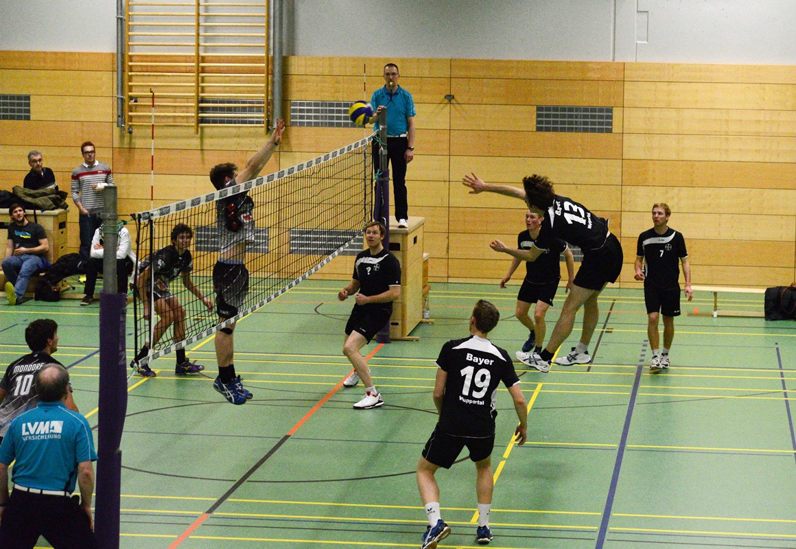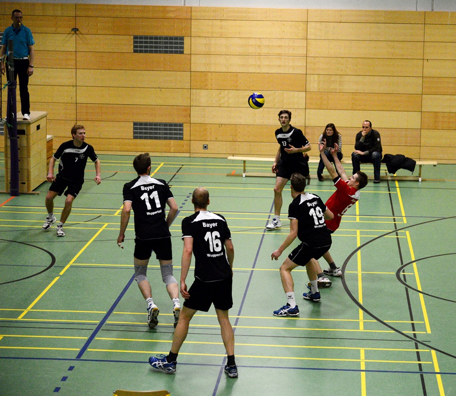12.01.13 - "Ärgerliche Niederlage" gegen den Tabellenletzten TuS Mondorf - 1:3 (25:23 / 19:25 / 26:28 / 25:27) - (HG) - Auf ungewohntem Parkett im SZ West in der Sporthalle „Am Nocken“ in Vohwinkel begann der erste Satz für die Wuppertaler mit einem stetigen Hinterherlaufen einer knappen Mondorfer Führung. Nach 10 Minuten schafften unsere Jungs den Ausgleich zum 12-12. Jetzt hatte der SVB immer die knappe Führung, Ausgleich beim 16-16 und 18-18. Mondorf kam noch einmal auf einen Punkt heran, doch in der Auszeit beim 22-21 konnte das Trainergespann Fabian/Dirk unsere Jungs gut für den Satzsieg motivieren, 25-23 nach 22 Minuten für den SV Bayer.Im zweiten Satz führte zunächst der SVB, nach dem 3-3 drehten die Mondorfer das Spiel, jetzt führten sie mit bis zu 4 Punkten. Mit einem Ass von Stephan Woltmann kam es nochmal zum Ausgleich beim 13-13. Doch Probleme in der Annahme und ungenaues Zuspiel auf unserer Seite, dazu konsequente Angriffe der Mondorfer, führten zu einer weiteren Führung der Gäste. Beim 14-19 dann ein Doppelwechsel, Florian Mönikes und Kay Smarczewski verließen das Spielfeld und Fabian Stuhlmann und Ronny Seegert kamen ins Spiel. Doch diese Wechsel hatten keinen Einfluss mehr auf das Spiel. Mit einem Netzballroller ging der Satz an den Gegner, 19-25 nach 20 Minuten.Der dritte Satz brachte unsere Jungs gleich ins Hintertreffen, bei 0-4 musste schon die erste Auszeit her. Das half wohl, denn wir machten Punkt um Punkt und glichen aus zum 4-4, eine gute Aufschlagserie von Edwin Arnold brachte den SVB in eine 8-4 Führung. Doch die Mondorfer wehrten sich und es kam zu einem offenen Schlagabtausch. Keiner der beiden Mannschaften konnten sich so richtig absetzen. Ein schöner Block von Kay Smarczewski brachte das 22-22. Man musste den Sack jetzt nur noch zumachen, aber es lief weiter eng bis zum 24-24. Doch Mondorf hatte dann im Folgenden die Nase immer vorn, Bayer konnte nur ausgleichen und nicht einmal die Führung erkämpfen und musste sich mit 26-28 nach 27 Minuten geschlagen geben.Die gut 50 Zuschauer, unter ihnen auch unsere drei Verletzten (Gorden, Sebastian und Kolja), hofften nun auf ein Aufbäumen der Wuppertaler, ein Satzgewinn konnte wieder einmal den fünften Satz für eine Entscheidung herbeizwingen. Doch es lief anders, es ging weiter eng zu. Im ersten Satzteil führte der SVB, beim 15-11 machte Mondorf einen doppelten Spielerwechsel, der Punkteabstand wurde immer enger. Nach dem 20-20 Ausgleich verlief der restliche Satz wie im dritten Satz, 23-23, dann 25-25, und wieder hatte Mondorf das glücklichere Ende, 25-27 nach 25 Minuten.Es spielten: Florian Mönikes, Stephan Woltmann, Edwin Arnold, Kasjan Nowacki, Arne Brüggemann, Kay Smarczewski, Ronny Seegert, Svante Renzelmann, Pascal Jonietz, Fabian Stuhlmann und Dirk GrüblerDas Spiel muss jetzt abgehakt werden, nächsten Samstag (19.01.) ist schon das nächste Heimspiel, wieder im SZ West (Bayerhalle wegen Fußballturnier belegt). Gegner ist der Tabellendritte TV FA Dresselndorf.