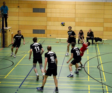 24.11.12 - 3:2-Sieg gegen den Tabellenzweiten SG Menden-Much/Windeck - (HG) - Der erste Satz begann ganz schlecht, der SV Bayer kam schnell ins Hintertreffen, es lief nicht viel zusammen. Der Gegner lag mit bis zu 10 Punkten vorne, beim 13-22 kam unser Team endlich über Kampf ins Spiel, verlor aber 20-25.Der zweite Satz war hart umkämpft, kein Team konnte sich absetzen. Beim 19-22 hatte dann Menden-Much/Windeck die Nase vorn. Nach einer Auszeit von Spielertrainer Dirk Grübler kämpfte unser Team um jeden Punkt, über Gleichstand, Matchbällen und abgewehrte Matchbällen stand es schließlich 28-28, aber nach zwei seltsamen Schiedsrichterentscheidungen gewannen die Rheinländer mit 30-28.Der dritte Satz lief zunächst wie der zweite Satz, die Zuschauer sahen ein spannendes Kopf-an-Kopf-Rennen. Nach dem 12-12 konnte der SV Bayer sich dann absetzen, über 16-13, 20-17 gelang der Satzgewinn mit 25-20.Im vierten Satz übernahm der SV Bayer von Anfang an die Führung, wir waren im Spiel. Der Gegner kam einfach nicht mehr heran. Die Folge war der Satzgewinn mit 25-17. Es stand jetzt nach Sätzen 2-2.Der Tiebreak musste die Entscheidung bringen. Bis zum 5-5 war noch alles offen, doch dann rollte die Bayer-Punktemaschine, Ball um Ball wurde gewonnen, und der Satz schließlich mit 15-8 beendet.Der 3-2 Sieg über den Tabellenzweiten der RL-West war nach anfänglichen Schwächen eine sehr gute Mannschaftsleistung, wobei das variable Zuspiel von Florian Mönikes und die gute Leistung von Dirk Grübler auf der Mittelposition hervorzuheben sind.