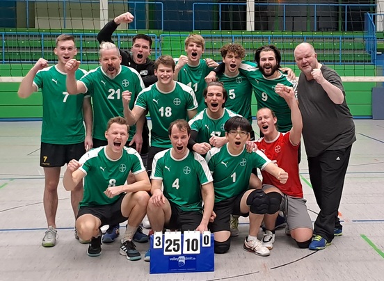 18.03.23 - Herren sind die Aufsteiger in die Landesliga ! - Auch im letzten Saisonspiel stand ein ungefährdeter 3:0-Sieg diesem Ziel nicht mehr im Wege. Am Anfang etwas unkonzentriert und nachlässig, rollte dann aber Angriff auf Angriff und gute Aufschläge dazu. Die junge Truppe aus Solingen war dagegen wehrlos und nach knapp einer Stunde stand der Aufstieg unter lautem Jubel fest. Am Ende war es nur eine Niederlage gegen den stärksten Konkurrenten Lennep und am Ende waren es "nur" die besseren Sätze, die Herren 2 im nächten Jahr Landesliga spielen lassen.