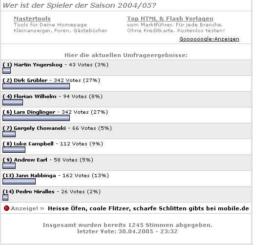 (Die Abstimmung lief bis zum letzten Spieltag der Saison 0405, dem 30.04.2005 - 23:59 Uhr!)