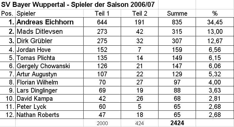 Auch in der Saison wurde bei schranni.com eine Umfrage zum Spieler der Saison 2006/07