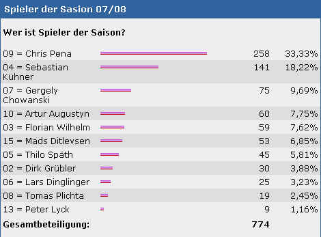 Schranni wollte auch in dieser Saison von seinen Lesern wissen: Wer war Eurer Meinung nach der Der Spieler der Saison 2007/08 beim SV Bayer Wuppertal?